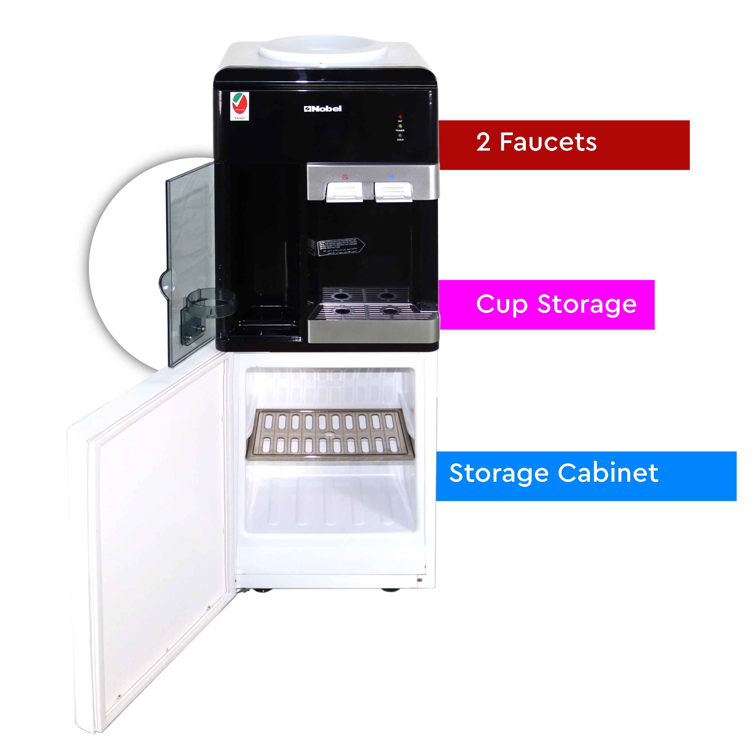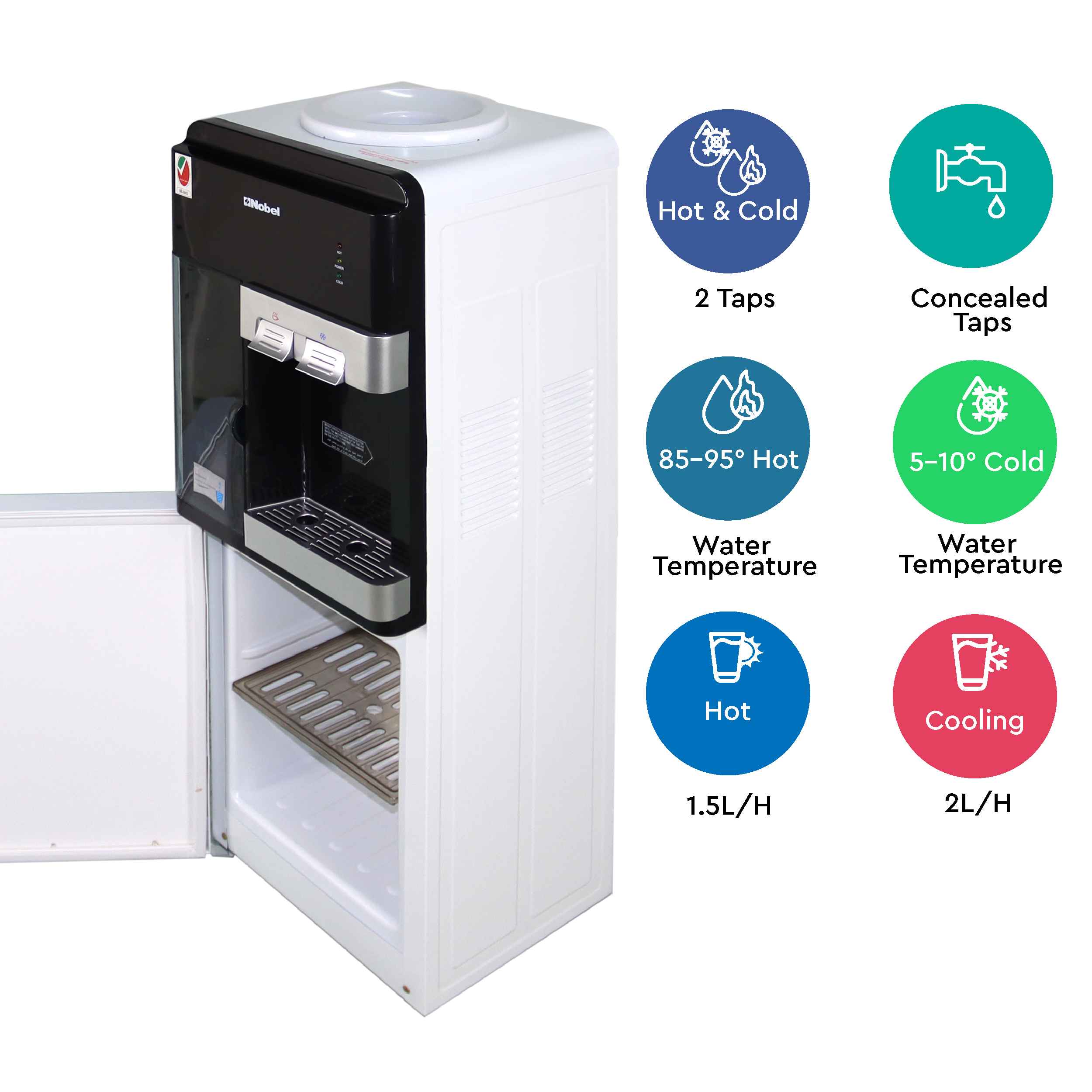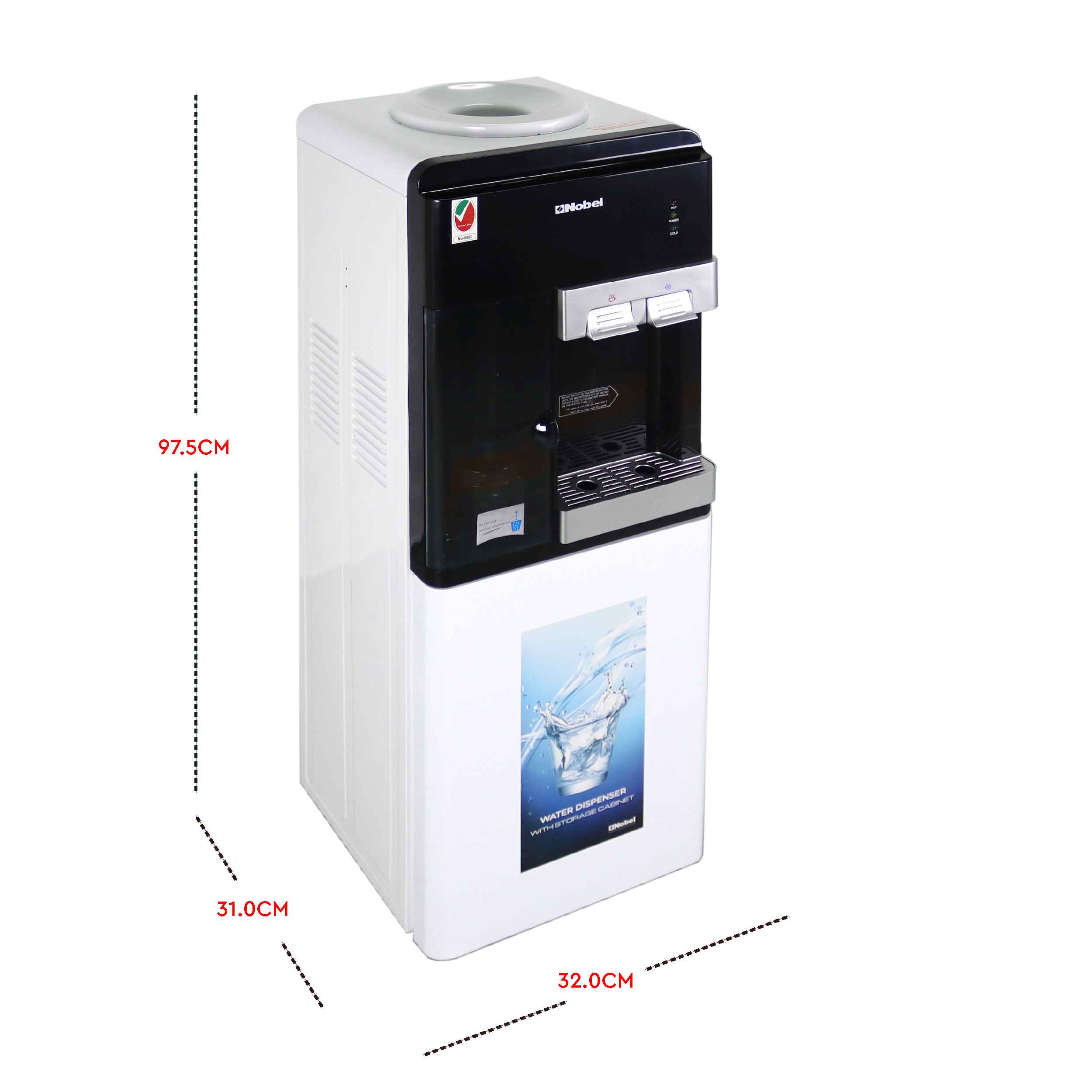 Nobel Free Standing Water Dispenser White R134A Cabinet Hot And Cool Compressor Cooling NWD1605