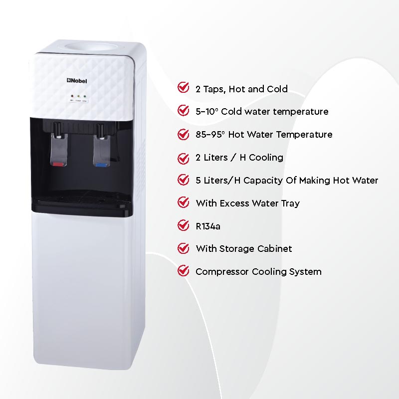 Nobel Free Standing Water Dispenser White R134A Cabinet NWD1602