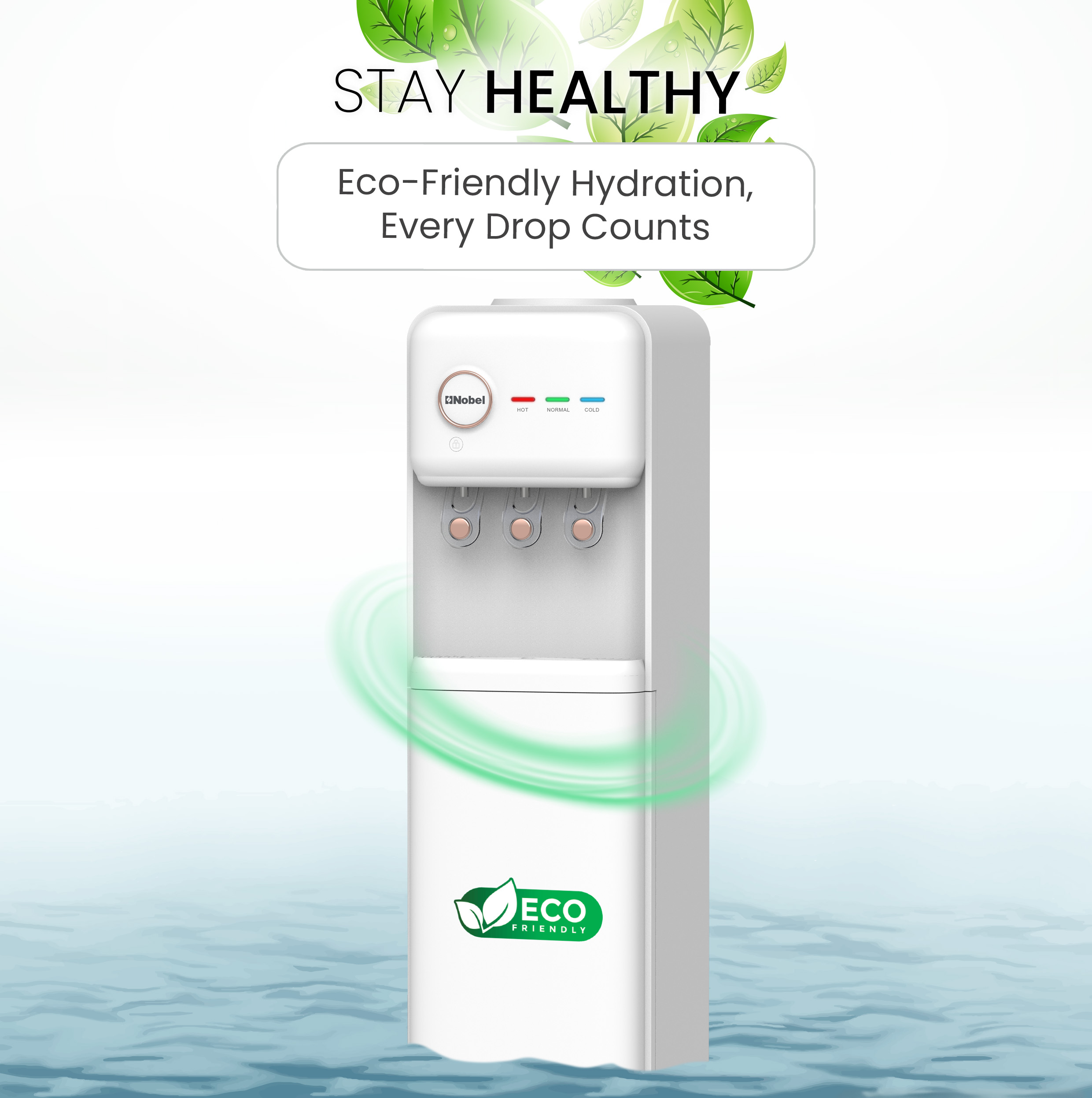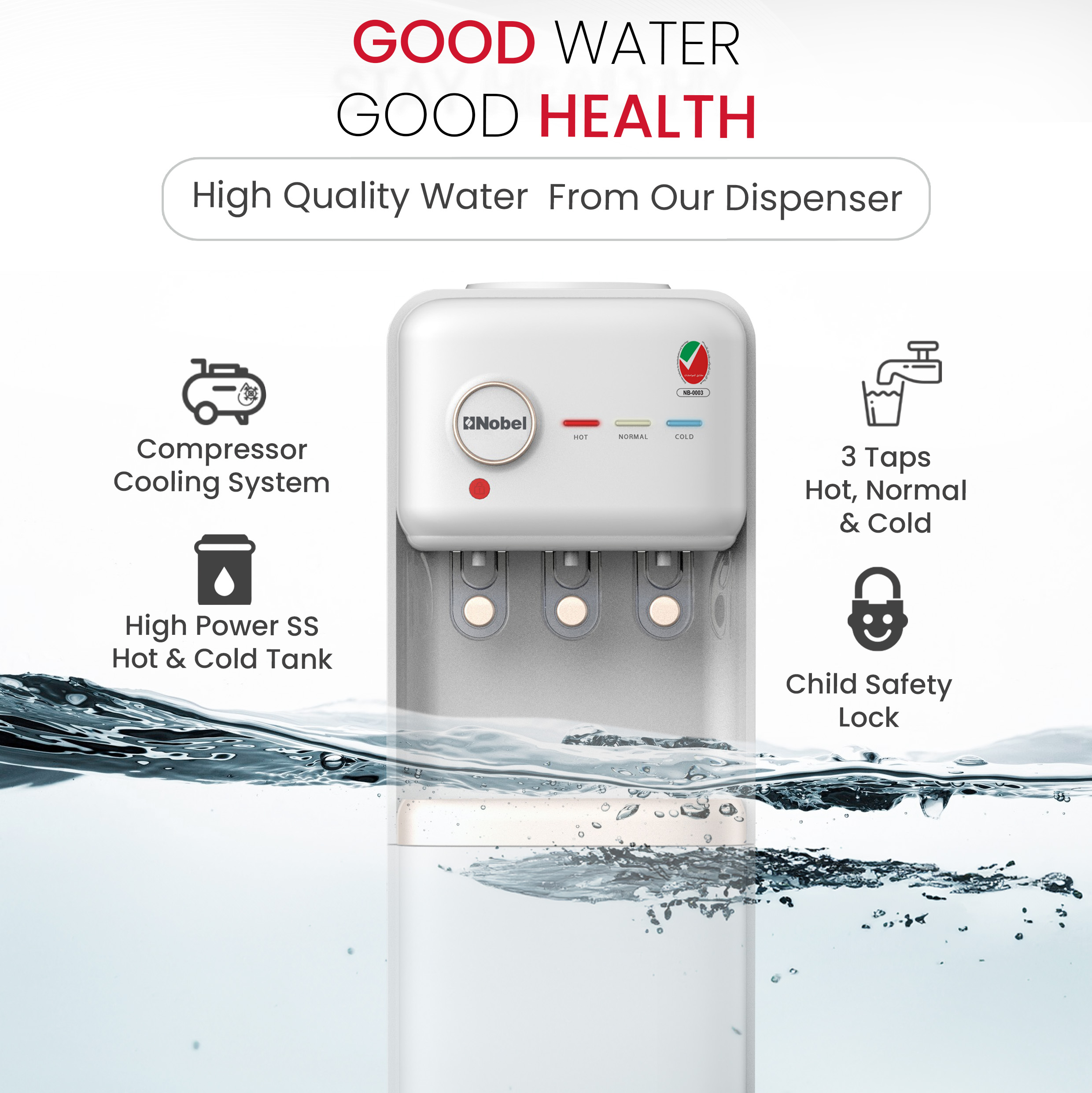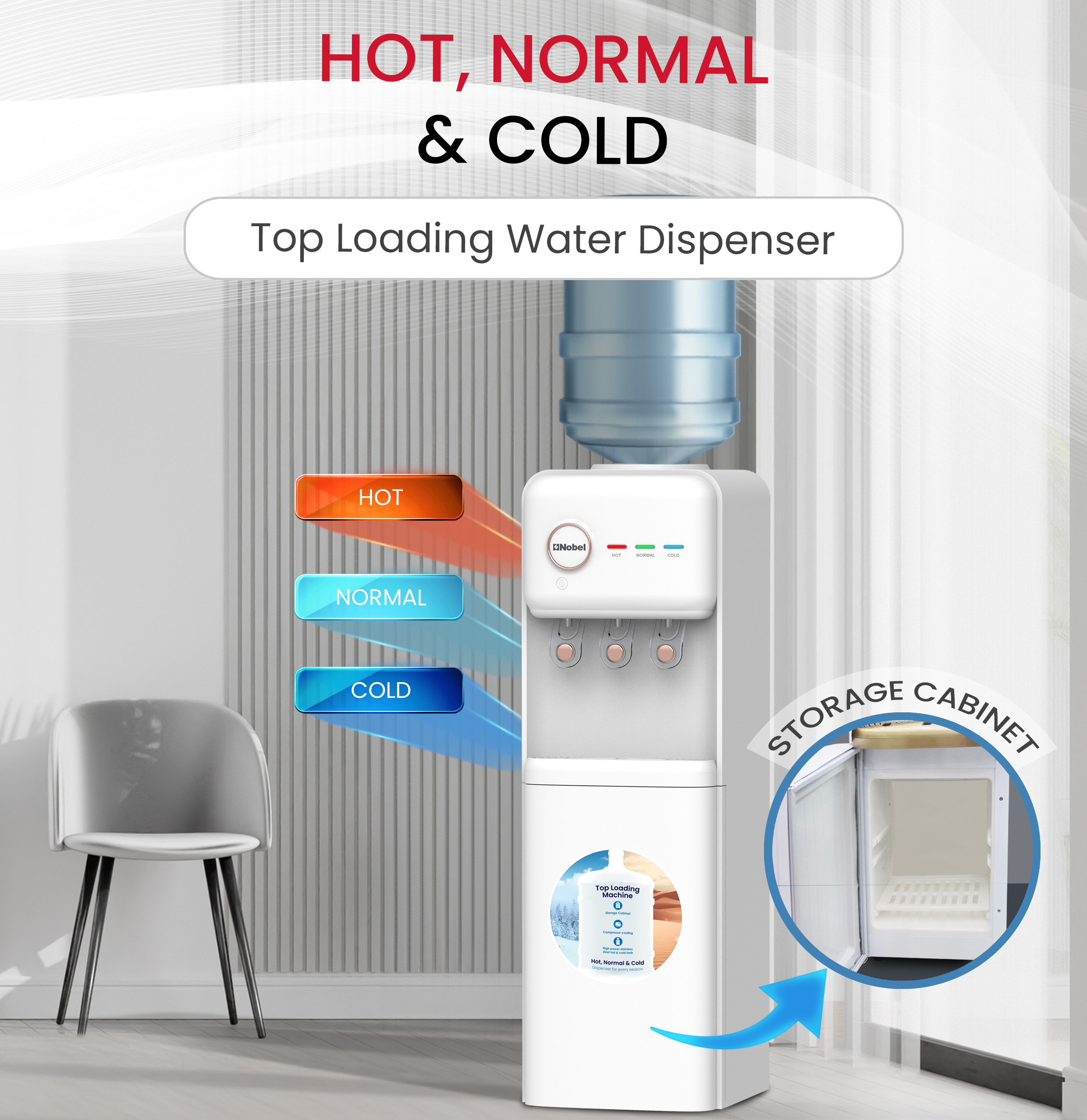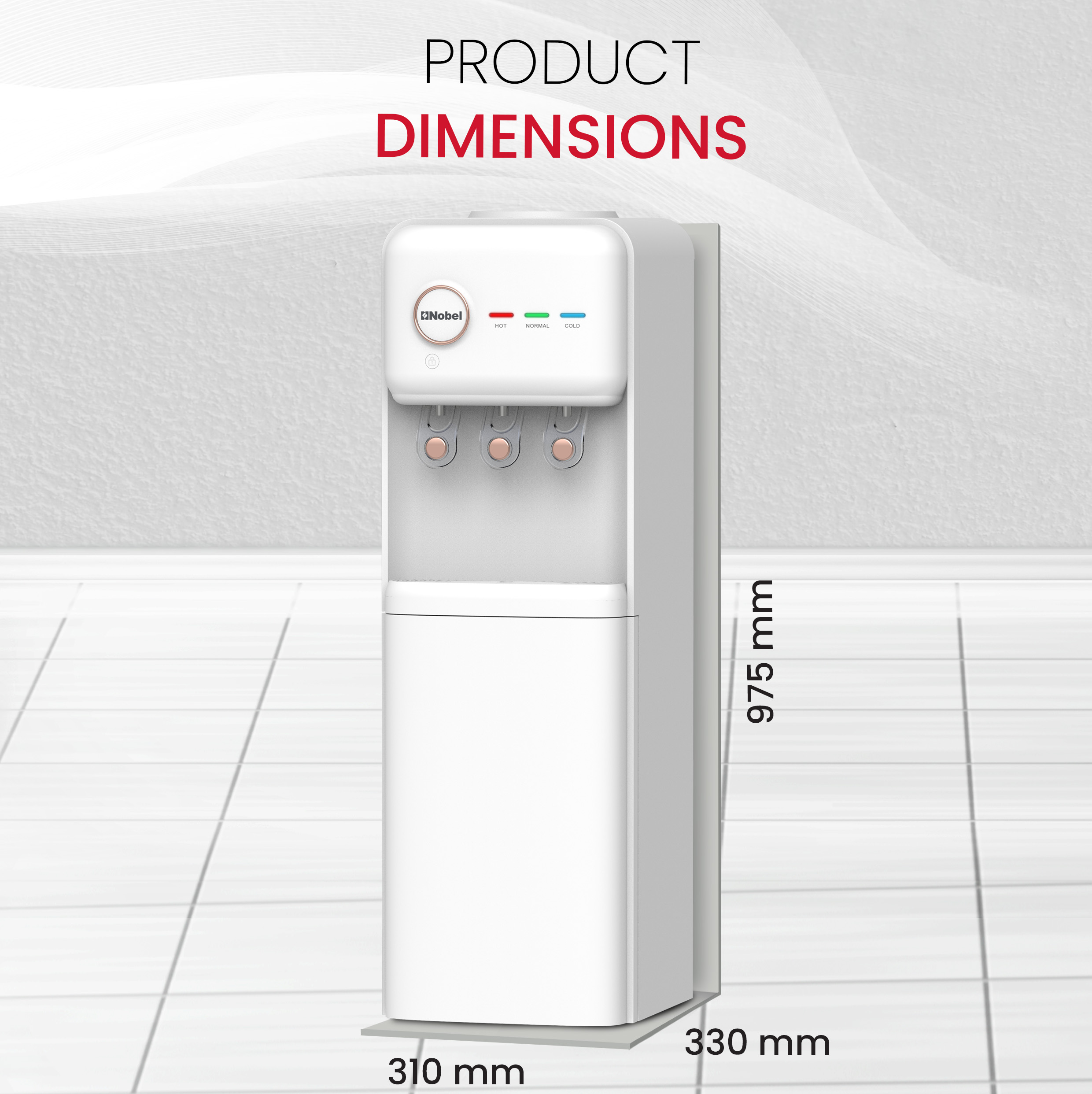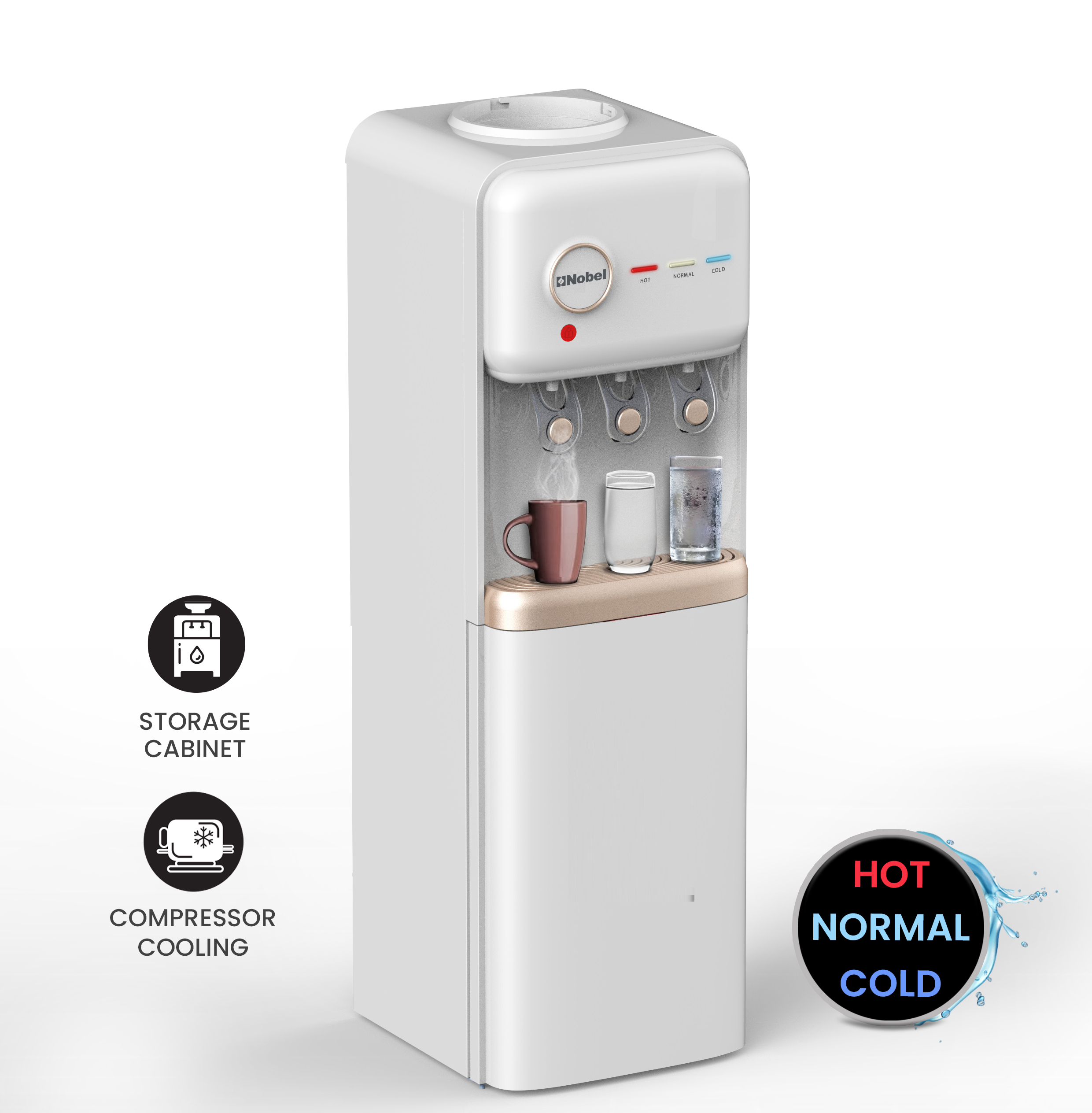 Nobel Freestanding 3 Taps Water Dispenser With Hot, Normal & Cold Taps, Compressor Cooling, Storage Cabinet – NWD1608