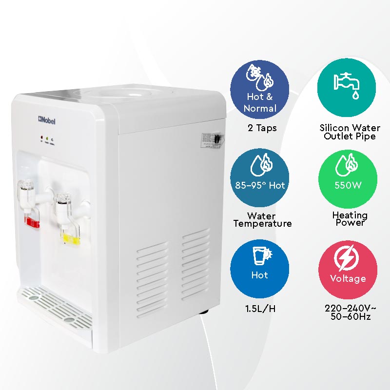 Nobel Table Top White 2 Taps Hot And Normal Durable Body 5L/H, 85-95°C Heating Capacity NWD553