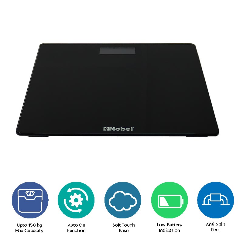 Nobel Weighing Scale Black 150 Kgs Tempered Glass Digital Anti Slip Feet NBS52BK